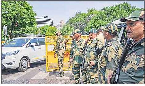 火曜日の朝、警察チームがコンノートプレイスの警備体制を監視した。